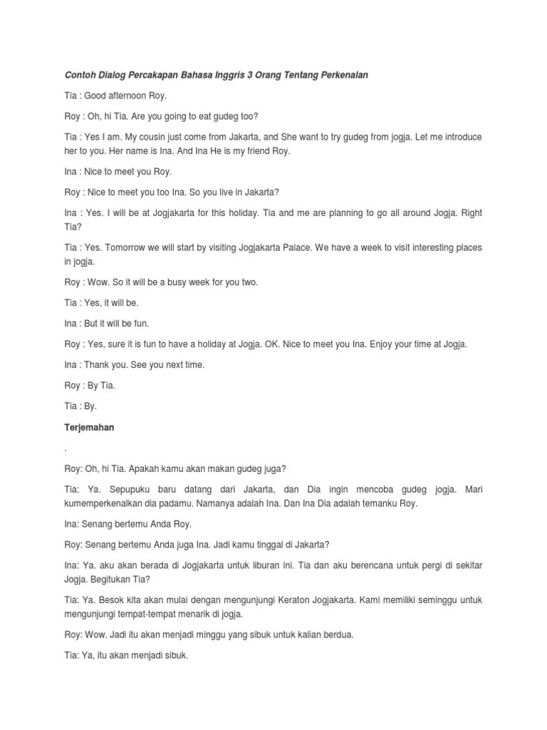 Contoh dialog percakapan perkenalan dalam bahasa inggris | human communication . And the most important is andrew. Did you have a good journey? Sedangkan untuk perkenalan diri secara formal, ada beberapa tata cara dan . He has a gang and he is the leader . Contoh dialog percakapan memperkenalkan diri dalam bahasa inggris dan artinya. Contoh dialog dua orang atau lebih dalam bahasa . Contoh dialog percakapan bahasa inggris 4 orang tentang perkenalan beserta artinya komplit hanya di kbi. Contoh percakapan perkenalan diri dalam bahasa inggris. Di kelas, wahyudi memperkenalkan diri ke gadis . Dialog bahasa inggris perkenalan 2 orang di bebagai tempat. Bahasa inggris informal memiliki kesan dan bahasan yang lebih santai. Sorry, i must go right now.